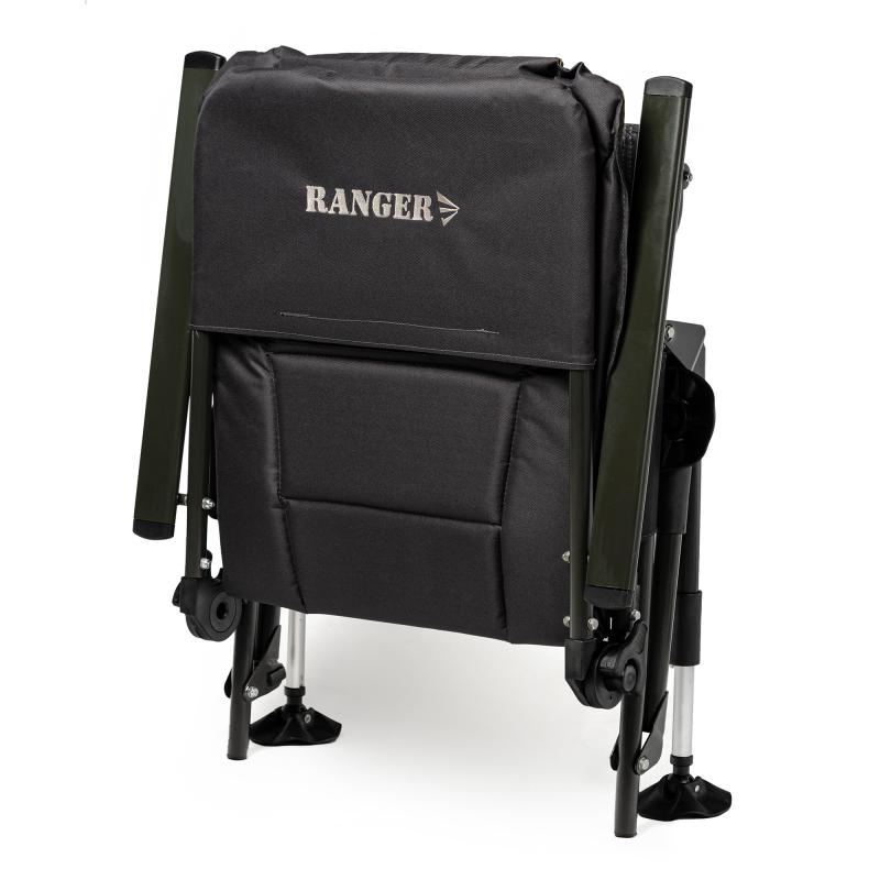 Коропове крісло Ranger Рower SL-109 – велике і широке коропове крісло для рибалки. Головна його перевага в тому, що можна відрегулювати кожну ніжку на потрібну висоту, щоб крісло на будь-який нерівній поверхні розташовувалося рівно. Ніжки стійкі і не занурюються в грунт, за рахунок збільшеної площі. Сталева конструкція крісла потужна, розрахована на велике навантаження у 150 кг.