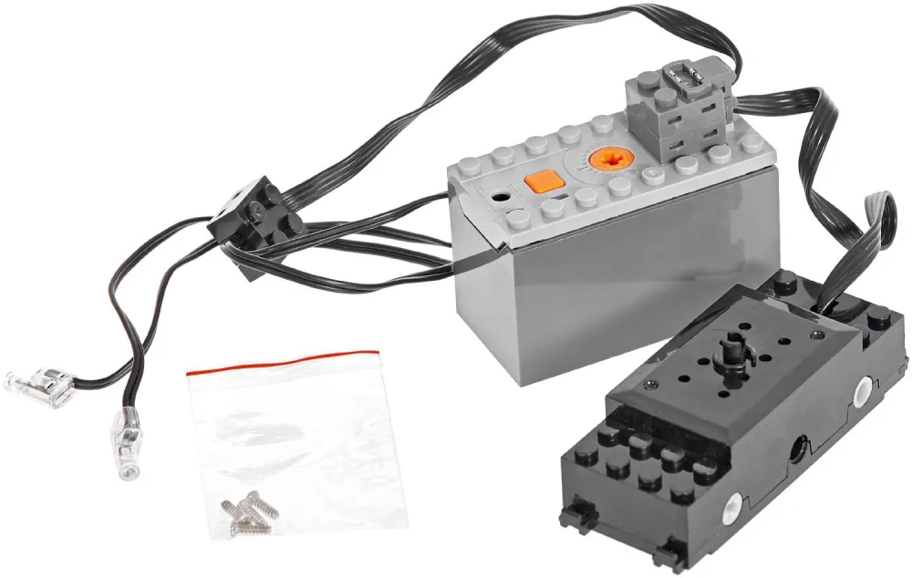 Усі деталі конструктора виготовлені із міцних, безпечних для здоров'я матеріалів. Поїзд рухається вперед і назад із різною швидкістю. Локомотив живиться від батарейок (5 батарейок 1,5V типу ААА, не входять у комплект), фари локомотива світяться.