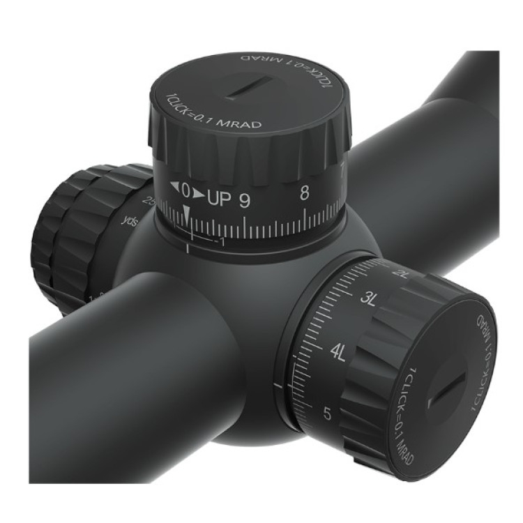 Регулювання поправок: Точні тактичні барабанчики для корекцій по вертикалі та горизонталі з чіткими клацаннями (ціна кліка 1/10 MRAD), що дозволяє швидко та точно налаштовувати приціл.