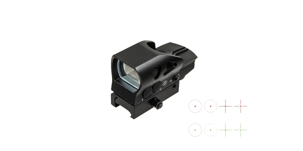 Коліматорний приціл Vector Optics Z4 характеризується об'єктивом (віконною лінзою) розмірами 23 мм х 34 мм, 4-ма видами прицільної сітки в 2-х кольорах, червоному та зеленому.