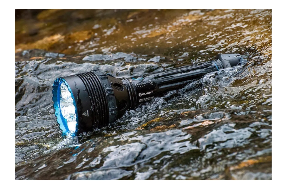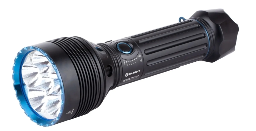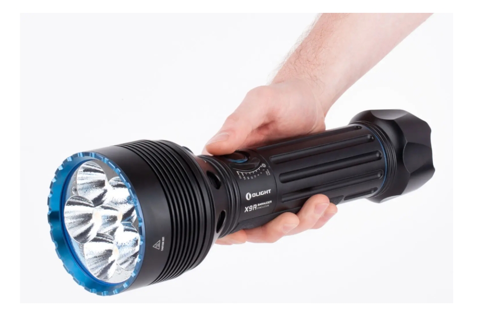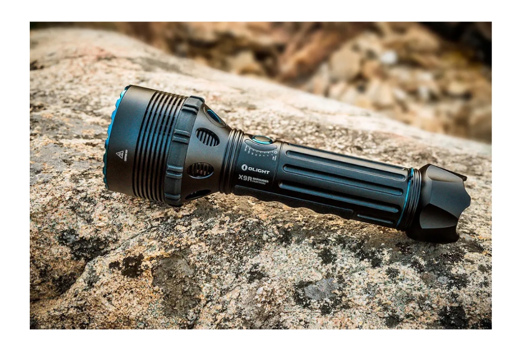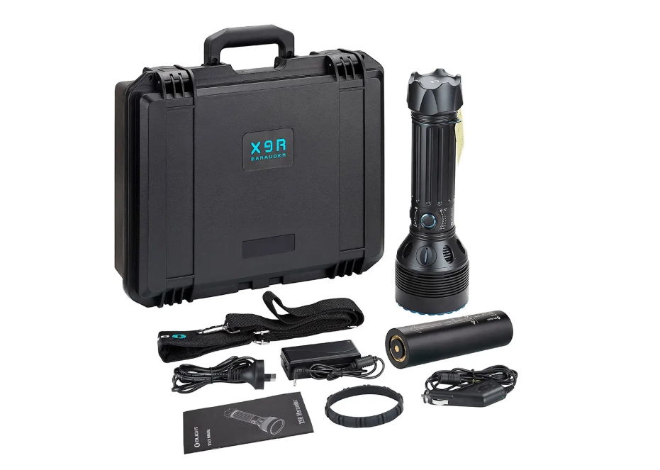 Olight X9R Marauder — флагманський надпотужний ліхтар із яскравістю до 25000 люмен і дальністю променя до 630 метрів. Оснащений 6 світлодіодами Cree XHP 70.2, забезпечує широкий кут засвіту до 160°, що робить його ідеальним для пошукових і рятувальних робіт, полювання та риболовлі.