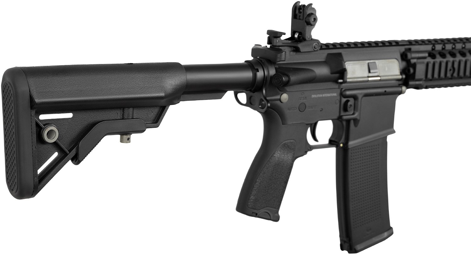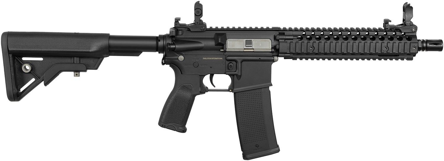 Лінійка Evolution Airsoft Combat Series (AEG) — створена для тих, хто цінує легкість, надійність і сучасні технічні рішення. Корпус кожної моделі виготовлений із посиленого полімеру Carbontech — міцного й зносостійкого матеріалу, який робить зброю одночасно легкою та довговічною. Модульна цівка EMR (Enhanced Modular Rail) забезпечує широкі можливості для встановлення аксесуарів. Продумана ергономіка і точна механіка гарантують стабільну роботу в динамічних умовах; серія підходить як для змагальних матчів, так і для тренувань.