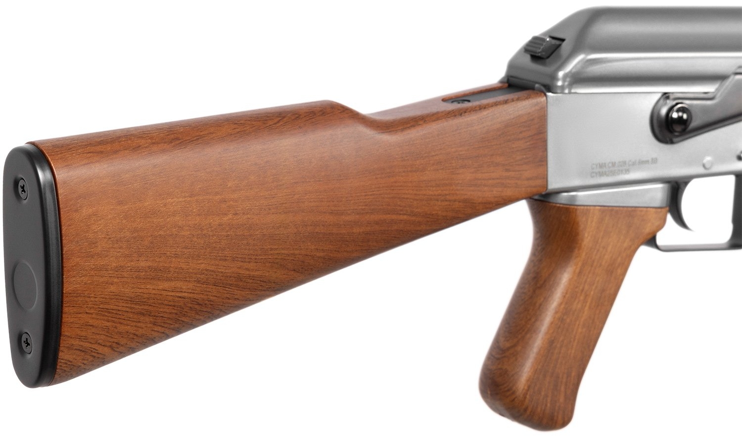 Cyma CM.028 — високоякісна страйкбольна репліка легендарного автомата Калашникова, відома своєю надійністю і точністю виконання. Модель поєднує реалістичний дизайн і відмінні технічні характеристики, що робить її популярним вибором серед гравців.