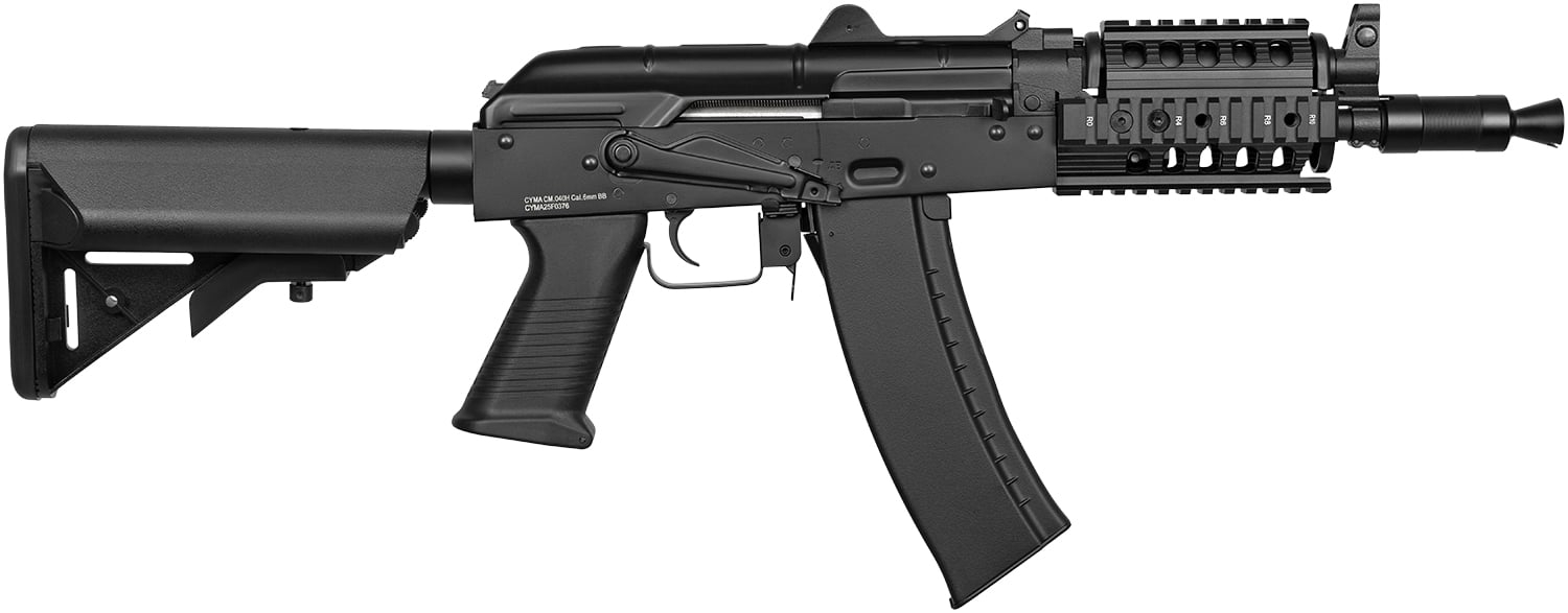 Cyma CM.040H — високоякісна страйкбольна репліка АКС-74У, що поєднує реалістичний зовнішній вигляд і надійну внутрішню начинку. Завдяки сталевій ствольній коробці та міцним зовнішнім деталям модель максимально наближена до бойового прототипу і витривала в польових умовах.