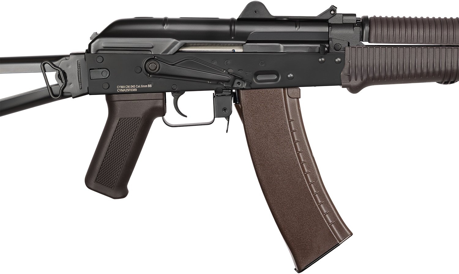 Cyma CM045 — високоякісна страйкбольна репліка АКС-74У, яка поєднує реалістичний зовнішній вигляд із надійною внутрішньою начинкою. Сталева ствольна коробка та міцні зовнішні деталі роблять модель максимально наближеною до бойового прототипу й витривалою в польових умовах. Складний приклад забезпечує зручність при транспортуванні та компактне зберігання, а габарити роблять гвинтівку придатною для інтенсивних ігор на коротких дистанціях і в закритих приміщеннях.