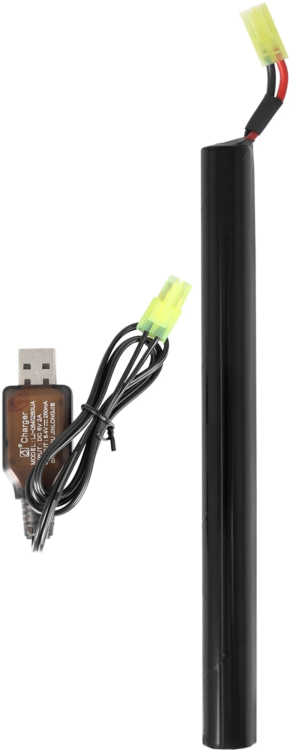 У комплекті йде бункерний магазин ємністю 500 BB-кульок, що забезпечує тривалі черги без дозаправки, а також акумулятор — репліка готова до використання «з коробки».