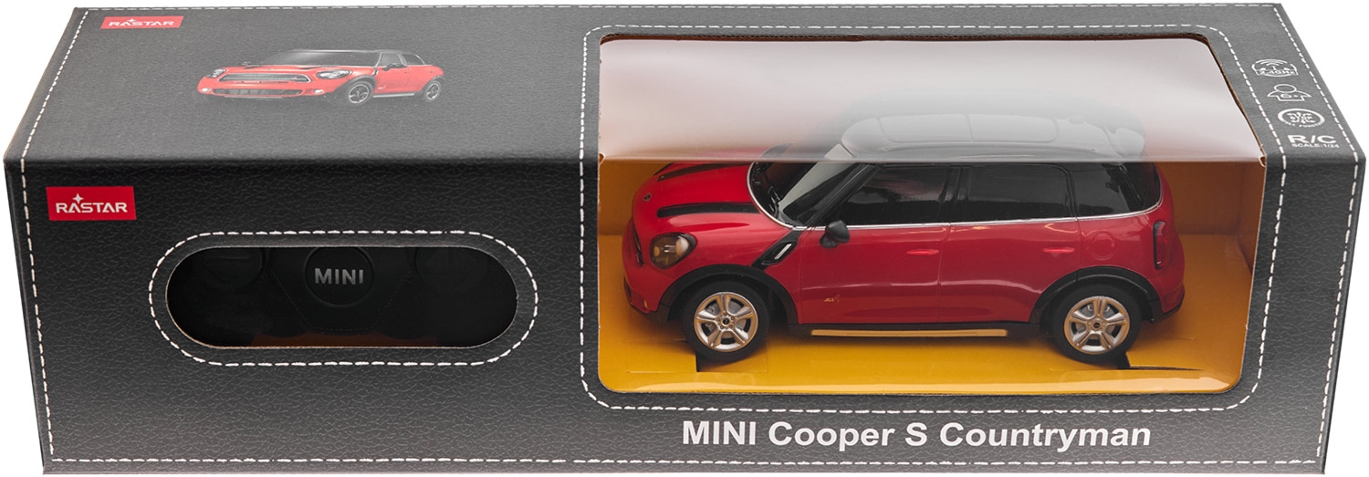 Відкрийте для себе світ реалістичних автомоделей з радіокерованою машинкою Rastar – точною копією стильного Mini Cooper S Countryman у масштабі 1:24. Ця модель вражає високою деталізацією: від унікальної форми кузова та акуратно відтворених логотипів до дрібних елементів декору.