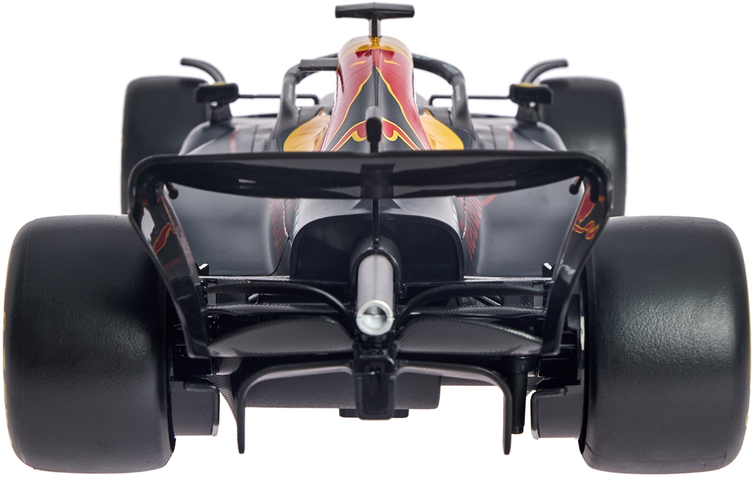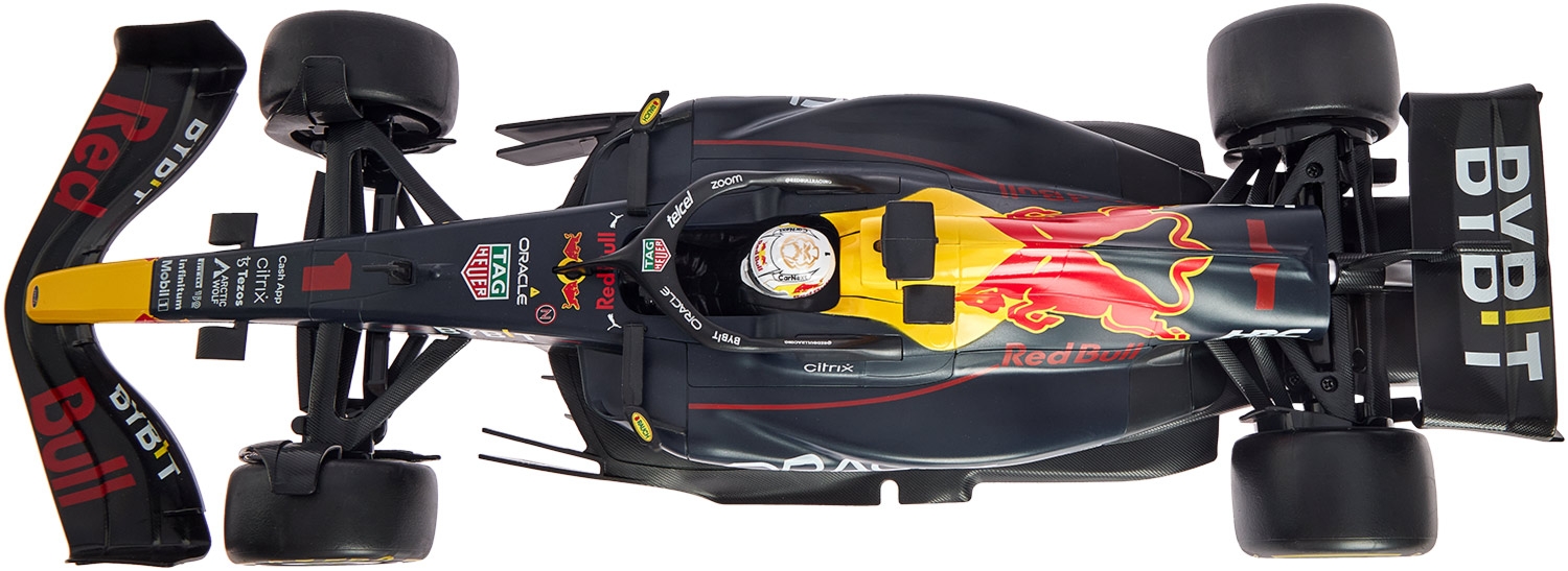 Модель має реалістичну забарвлення Red Bull Racing, що включає всі відповідні логотипи та спонсорські накладення. Керування на частоті 2.4 ГГц забезпечує плавний рух вперед/назад, точні повороти та маневреність на відстані до 20 метрів. Швидкість до 8-9 км/год дозволяє відчути себе справжнім пілотом.