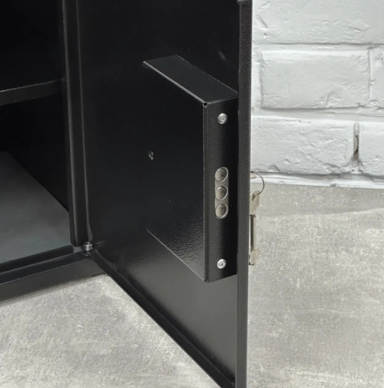 Меблевий (пістолетний) сейф пофарбований порошковою фарбою (t запікання 180 °C — що надає йому приємного вигляду та оберігає від корозії.