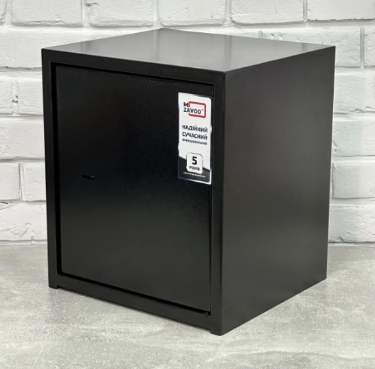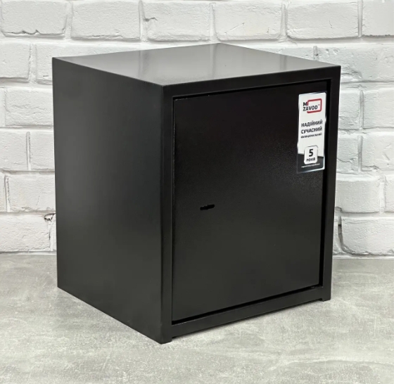 Конструкція сейфа виготовлена з листової сталі завтовшки 1 мм корпус, 2 мм дверна плита. Дверний отвір посилений. Краї дверей загнуті всередину, що підвищує міцність і стійкість до зламу. Сейф має внутрішні петлі — ці особливості конструкції також збільшують його надійність.