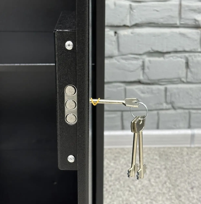 Надійний ключовий замок сувальдного типу з 3 ригелями діаметром 10 мм (горизонтальне відмикання) убезпечить ваші документи чи цінності від сторонніх.