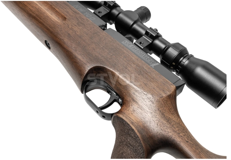 Сталевий нарізний ствол Weihrauch демонструє виняткову купчастість — близько 9 мм на дистанції 50 м та приблизно 15 мм на 70 м, що робить HW 100 однією з найточніших гвинтівок у своєму класі. Постріл практично повністю позбавлений вібрацій, дозволяючи стрільцю максимально реалізувати потенціал зброї.