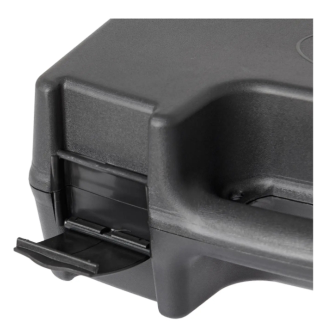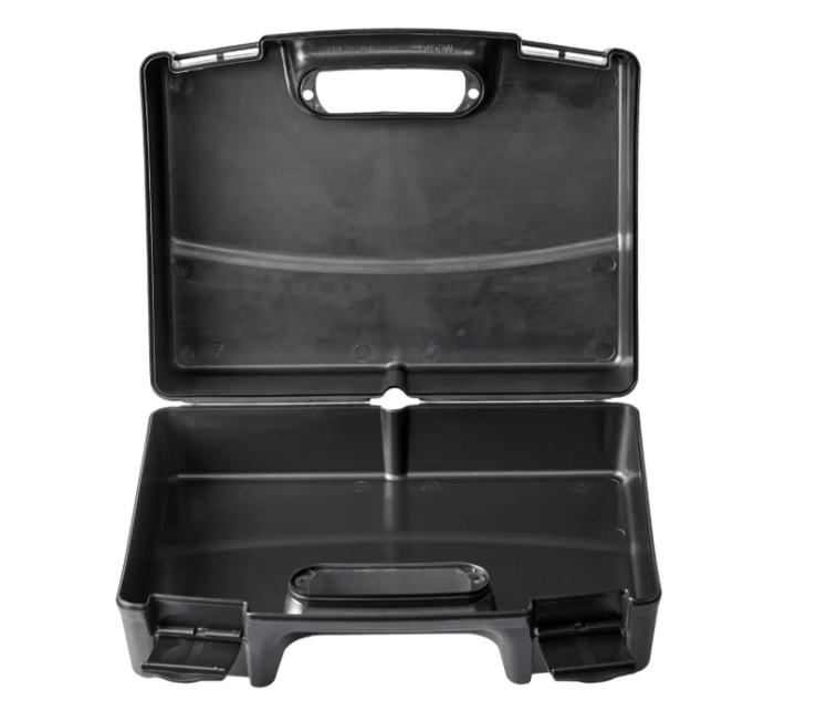 Кейс надійно закривається за допомогою пластикових засувок або засувок із кодовими замками. Також є спеціальний отвір для встановлення додаткового зовнішнього замка.