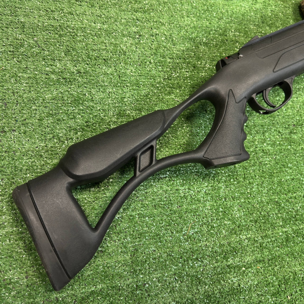 Вбудований глушник, автоматичний і ручний запобіжник, ложа і приклад з міцного, зносостійкого, ударостійкого та всепогодного пластика - все це ви знайдете в цій моделі гвинтівки.