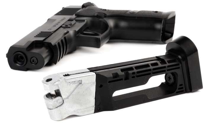 Проста система стрільби: він використовує 12-грамові балончики CO₂, які вставляються в рукоятку. Один балон забезпечує до 100 пострілів. Заряджається сталевими кульками BB (діаметр 4,5 мм), магазин вміщує до 20 штук.