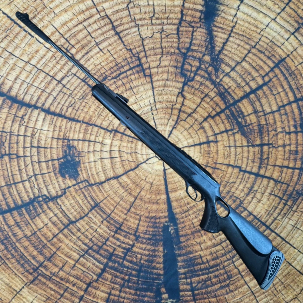 Пневматична гвинтівка Hatsan 125 TH. Стан за фото дуже хороший — якісна, потужна гвинтівка без суттєвих слідів експлуатації. Можливі лише окремі, ледь помітні потертості. Настріл приблизно близько 50 пострілів. Гвинтівка добре зберігалася, за нею регулярно доглядали, механізм повністю справний. Постріл дуже потужний — заявлена швидкість до 380 м/с, завдяки чому модель заслужено називають «відробій». Hatsan 125 TH вважається однією з найпотужніших пружно-поршневих пневматичних гвинтівок у своєму класі. Чудовий варіант для тих, хто шукає максимальну потужність та надійність.