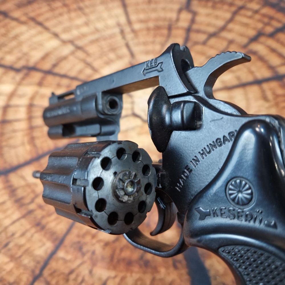Колекційна річ, рідкісний угорський 10-ти зарядний Флобер із цікавим дизайном. Технічно стан дуже добрий, є невеликі потертості (на фото видно). Невеликий настріл, стріляє відмінно, купно, без осічок, м'який спуск. Комплект: револьвер + кобура.
