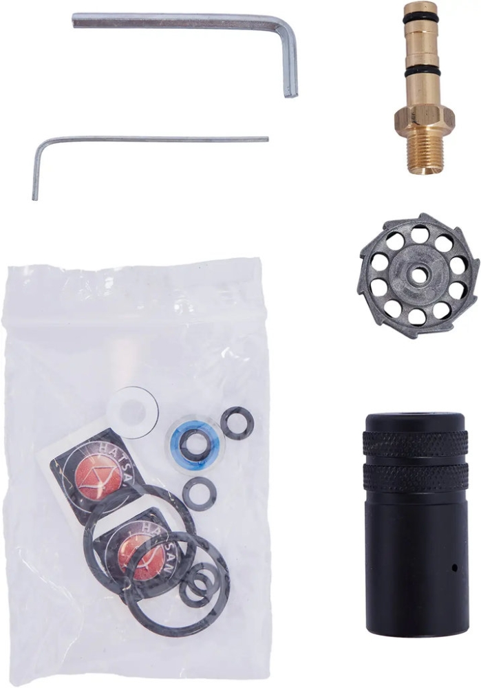 Комплектація: Інструкція (1), Магазин 10-ти зарядний (2), Ключ регулювальний шестигранний (2), Штуцер заправки (1), Ущільнювальне кільце (1), Наліпка (2), Ремінь (1), Мушка встановлена (1), Цілик встановлений (1), Антабка встановлена (1), Гайка (1), Планка Picatinny встановлена (1).