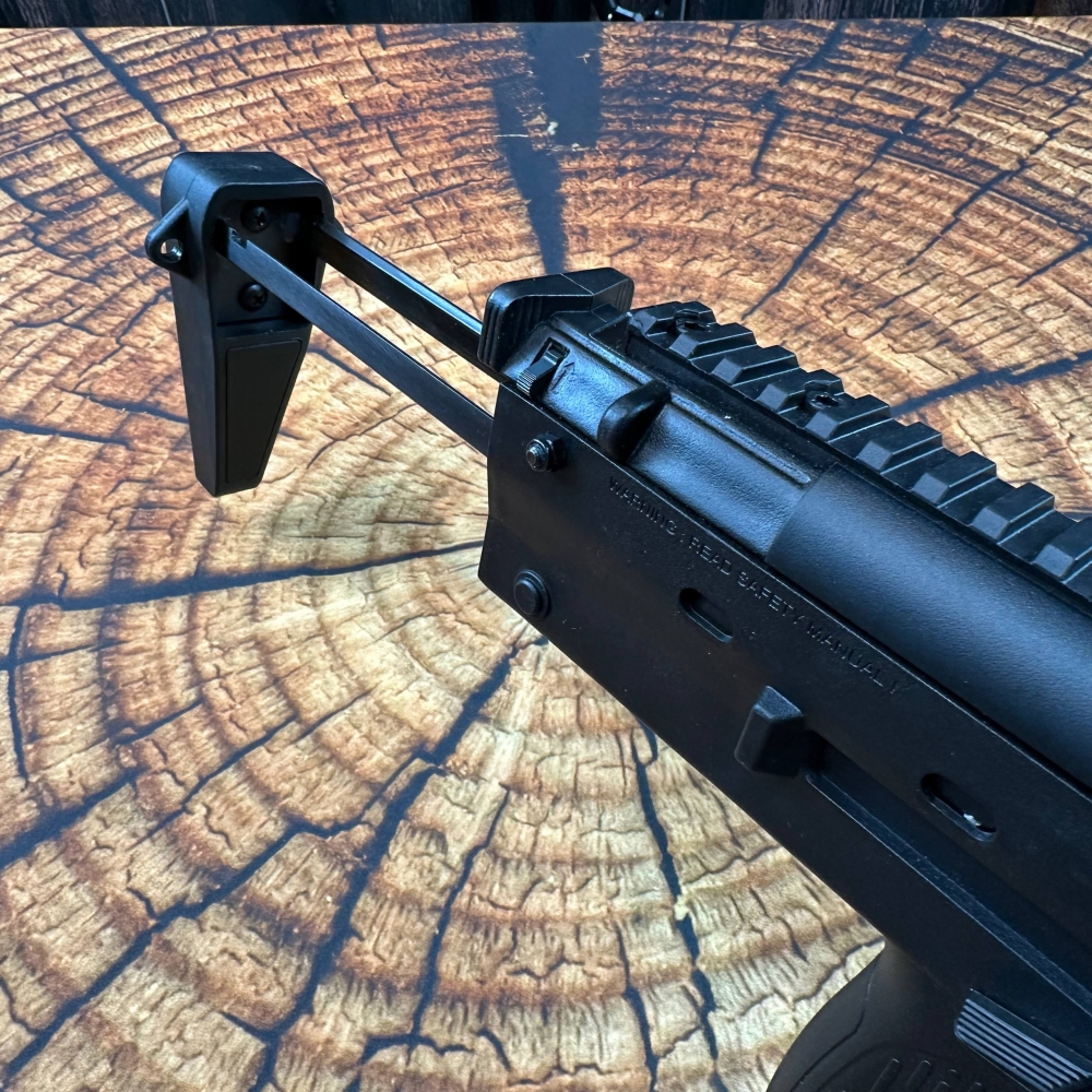 Пистолетная рукоятка имеет удобную нескользящую конструкцию, обеспечивающую надежный захват пневматического пистолета. Выдвижной приклад помогает повысить стабилизацию при прицеливании и может быть установлен в одно из трех положений. Имитатор саундмодератора помогает удобно перезаряжать пневматический пистолет, обеспечивая надежный захват процессе заряжания.