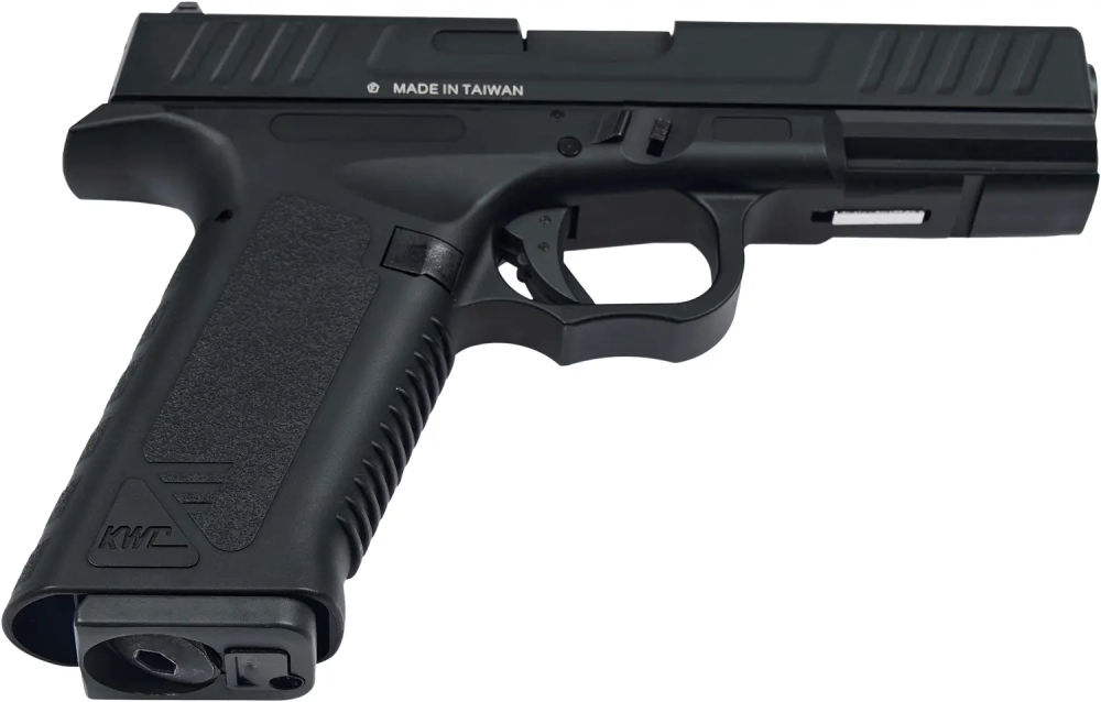 Главной особенностью пистолета является система Blowback — при каждом выстреле кожух-затвор из металла откатывается назад, точно имитируя работу боевого огнестрельного оружия. В сочетании с утяжеленным корпусом (общий вес — 755 г) это создает непревзойденный тактильный отклик и ощущение мощности. Рамка выполнена из прочного полимера, повторяя эргономику оригинала, что обеспечивает удобный и надежный хват.