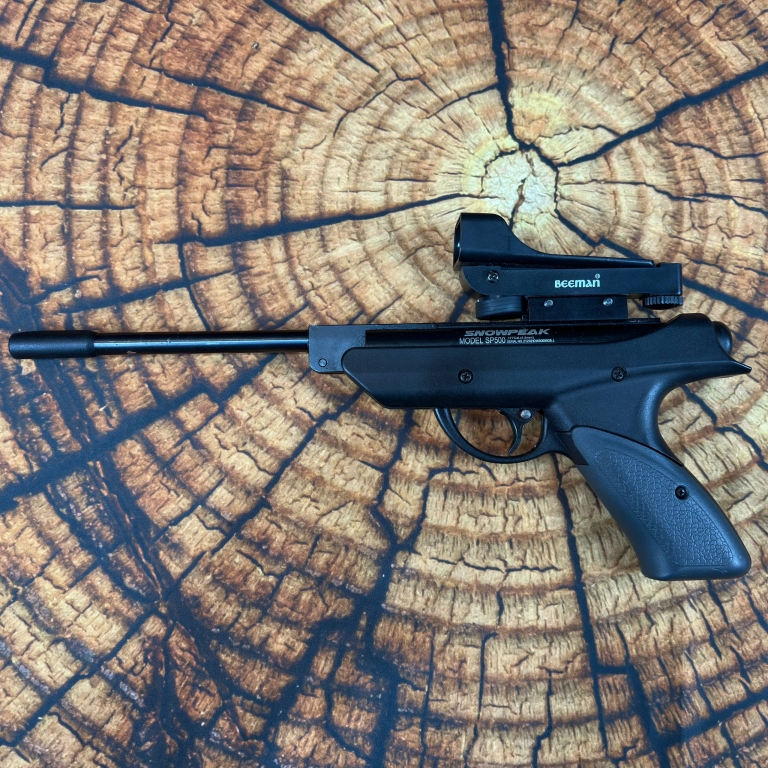 Классическая переломка от бренда ARTEMIS SP 500 в калибре 4.5 мм и скоростью пули 140 м/с. Snowpeak SP500 имеет полностью регулируемый целик, что позволяет точно установить прицел на любое выбранное расстояние, а усилие спуска можно регулировать в диапазоне от 3 до 8,5 фунта силы (1,4-3,9 кг). Пневматический пистолет имеет пластиковую рукоять и отличную эргономику.